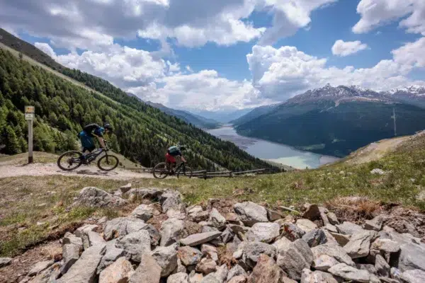 The scenic tour around Reschensee ranks among the most picturesque and tranquil tours in the tri-border area. The tour begins in Nauders and follows a loop around Reschensee, covering around 30 kilometres. As you ride, the striking panorama of the Ortler range and the iconic sunken church tower of Graun provide a memorable backdrop. Perfect for leisure riders, e-bike enthusiasts and road cyclists alike. The route consists largely of asphalt surfaces and well-kept trails.