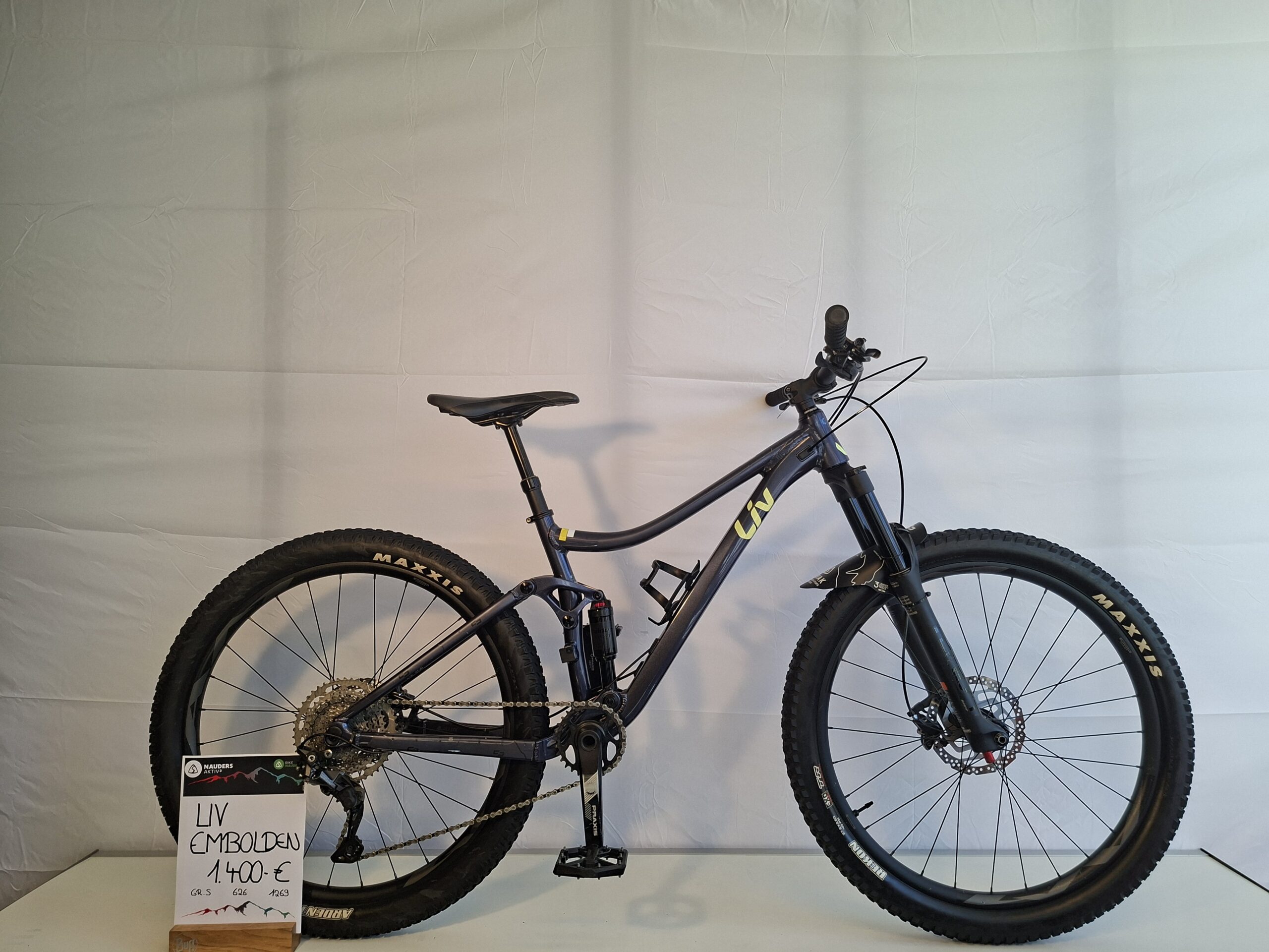 Ein 27,5″ / 29″ Trailbike für Frauen mit Aluminiumrahmen und Vollfederung mit gehobenen Mittelklasse-Komponenten.